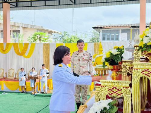 - เวลา 09.00 น. พิธีวางพุ่มดอกไม้ ณ อาคารอเนกประสงค์หน้าหอประชุมวาภาวดี อำเภอพระแสง จังหวัดสุราษฎร์ธานี