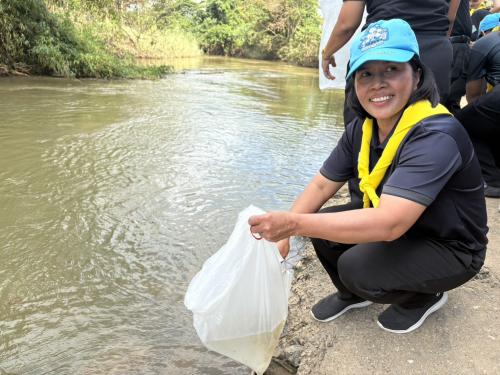 ในการนี้ นางสาวจารุณี บัวแก้ว พัฒนาการอำเภอพระแสง พร้อมด้วยเจ้าหน้าที่พัฒนาชุมชน เข้าร่วมทำกิจกรรมจิตอาสาฯ โดยร่วมทำความสะอาด เก็บและกวาดขยะ ใบไม้ รวมถึงร่วมกิจกรรมปล่อยพันธุ์ปลา เพื่อฟื้นฟูระบบนิเวศในสระน้ำและเพิ่มความร่มรื่นให้กับสวนสาธารณะสระแก้ว
