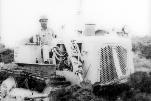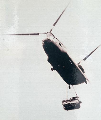 เวลา ๑๒.๐๐ น. เฮลิคอปเตอร์พระที่นั่งได้ร่อนลงจอดบริเวณสนามหน้าโรงเรียนย่านดินแดง ท่ามกลางประชาชนจำนวนมากที่หลั่งไหลมารอเฝ้ารับเสด็จด้วยความปลื้มปีติ ต่อมาไม่นาน เครื่องบินแบบซีเอช–๔๗ “ชีนุก” ได้บินมาถึงพร้อมบรรทุกวัตถุขนาดใหญ่ ซึ่งต่อมาประชาชนจึงทราบว่าเป็นใบมีดของรถแทรกเตอร์ โดยได้ลำเลียงมาลงไว้ในสนาม จากนั้นเครื่องบินลำเดิมได้กลับไปนำส่วนตัวรถมาประกอบเข้ากับใบมีดจนเป็นรถแทรกเตอร์ดีซีสมบูรณ์