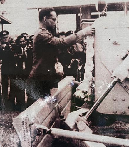 ภายหลังการประกอบรถแทรกเตอร์เสร็จสิ้น พระบาทสมเด็จพระเจ้าอยู่หัวฯ ทรงเจิมเครื่องจักร และทั้งสองพระองค์ทรงคล้องพวงมาลัยเป็นสิริมงคล ก่อนจะเสด็จฯ พร้อมหม่อมเจ้าหญิงวิภาวดี รังสิต ขึ้นประทับ ณ มุขหน้าสถานีอนามัยชั้นสอง ทรงมีพระราชดำรัสแก่ประชาชนผู้มาเฝ้ารับเสด็จด้วยความใกล้ชิด