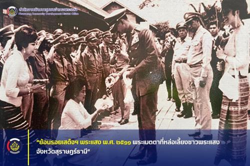 พระมหากรุณาธิคุณแห่งทั้งสองพระองค์ในครั้งนั้น ถือเป็นพระเมตตาอันล้นพ้น พระองค์ทรงตระหนักถึงความยากลำบากของราษฎรในพื้นที่ทุรกันดาร และทรงมีพระราชดำริให้จัดส่งรถแทรกเตอร์ดีซี ซึ่งมีนายแคล่ว เหล่าพัน เป็นผู้ขับ มาดำเนินการปรับปรุงเส้นทางคมนาคม เพื่อเปิดโอกาสให้ชาวอำเภอพระแสงได้สัญจรเชื่อมต่อกับพื้นที่อื่นได้สะดวกขึ้น ถือเป็นจุดเริ่มต้นของการพัฒนาท้องถิ่นอย่างยั่งยืน