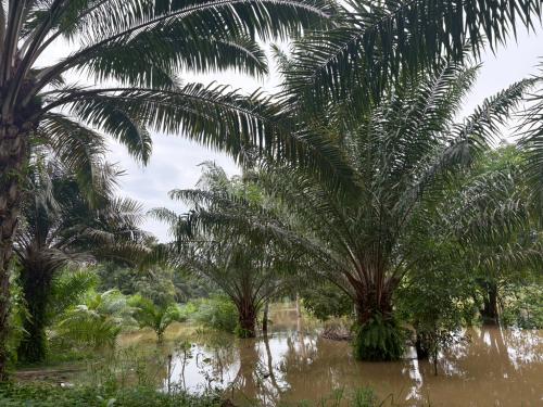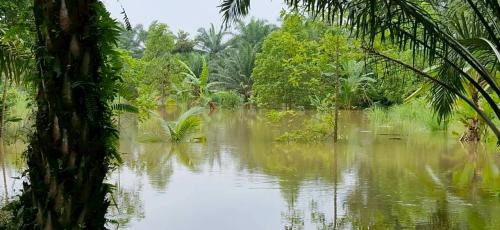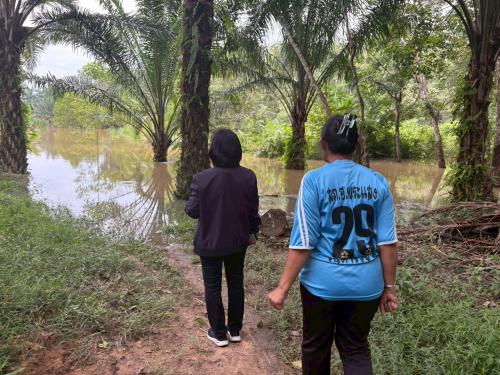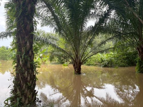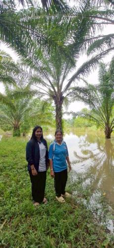 วันที่ 24 พฤศจิกายน 2568 นางสาว จารุณี บัวแก้ว พัฒนาการอำเภอพระแสง พร้อมด้วย นางสาวมลฤดี อิสสะ นักวิชาการพัฒนาชุมชนปฏิบัติการ ลงพื้นที่ติดตามสถานการณ์น้ำท่วมในพื้นที่แปลง โคก หนอง นา ของนายจรูญ คุ้มสังข์ หมู่ที่ 8 ตำบลอิปัน อำเภอพระแสง จังหวัดสุราษฎร์ธานี ซึ่งได้รับผลกระทบจากระดับน้ำที่เพิ่มสูงขึ้นอย่างต่อเนื่อง ส่งผลให้พื้นที่แปลงโคก หนอง นา บางส่วนได้รับความเสียหาย