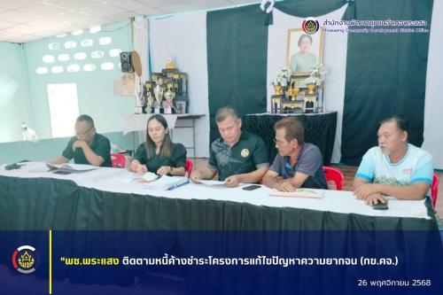 วันที่ 26 พฤศจิกายน 2568 เวลา 13.00 น. นางสาวจารุณี บัวแก้ว พัฒนาการอำเภอพระแสง มอบหมายให้ นางสาวจุฑาทิพย์ ภาพสวัสดิ์ นักวิชาการพัฒนาชุมชนปฏิบัติการ ลงพื้นที่ติดตามหนี้ค้างชำระโครงการแก้ไขปัญหาความยากจน (กข.คจ.) โดยมีคณะกรรมการ กข.คจ.หมู่บ้าน และครัวเรือนเป้าหมายที่มีหนี้คงค้างเข้าร่วมประชุม ณ ศาลาประชุมหมู่บ้าน บ้านควนสว่างวัฒนา หมู่ที่ 3 ตำบลไทรขึง อำเภอพระแสง จังหวัดสุราษฎร์ธานี